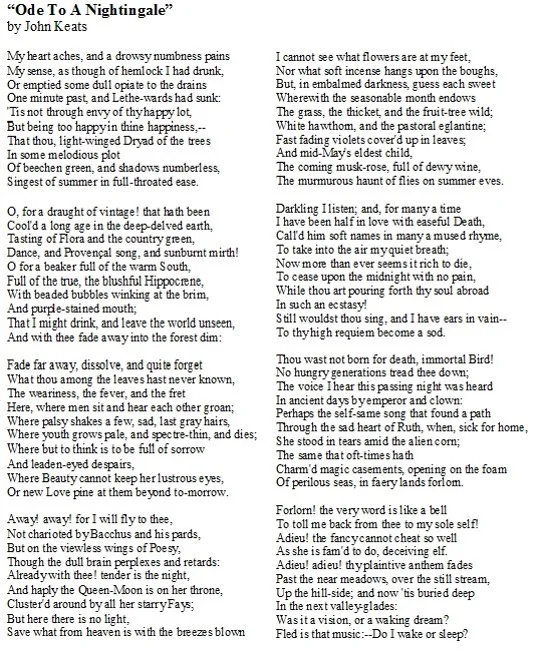 Les avantages et les inconvénients de "Ode to a nightinhgale"