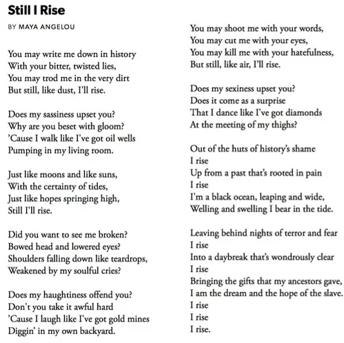 Apprendre l’anglais avec le poème Still I Rise de Maya Angelou présente de nombreux avantages pour les clients. D’abord, ce texte propose un vocabulaire riche, précis et poétique. Les apprenants découvrent des termes comme sassiness, haughtiness, welling, ou encore swelling, qui ne sont pas toujours enseignés dans les formations classiques mais qui enrichissent considérablement le lexique personnel. Ces poèmes en anglais offre également un excellent support pour travailler la prononciation, grâce à ses répétitions et à son rythme marqué. Cela facilite la fluidité de l’expression orale et la maîtrise des intonations.