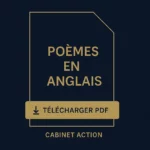 Vous souhaitez progresser en anglais ? Et si les poèmes en anglais devenaient votre meilleur allié pour gagner en fluidité, enrichir votre vocabulaire ou tout simplement reprendre confiance dans votre expression orale et écrite ? Chez Cabinet Action, nous avons conçu une formation unique : un coach dédié, des contenus littéraires inspirants, et une méthodologie qui allie plaisir, culture et efficacité. Un parcours fluide, motivant et sur-mesure pour apprendre l’anglais autrement… et durablement.